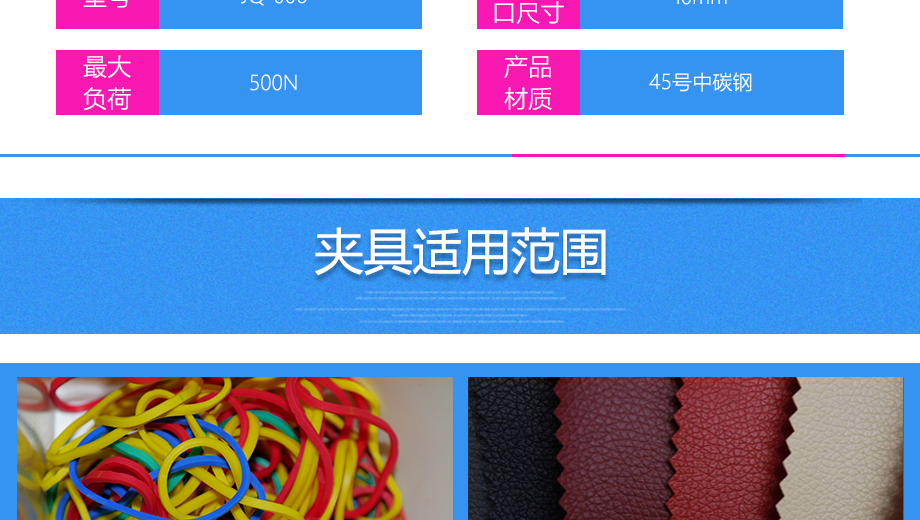 產(chǎn)品型號(hào):JQ-006 品牌:劍 喬 用途:端子扎帶拉伸夾具適用范圍: 橡膠、線纜、紙張、電器元件、塑料薄膜等材料的拉力、破壞力、插撥力的測(cè)試。